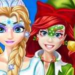 In Christmas Face Painting, it's the most festive part of the year, and there's a big celebration going to happen. Just like everyone else, the 3 beautiful princesses in this game are excited about the party, but they aren't ready to go yet. They need your help, so make sure they look great at the event!